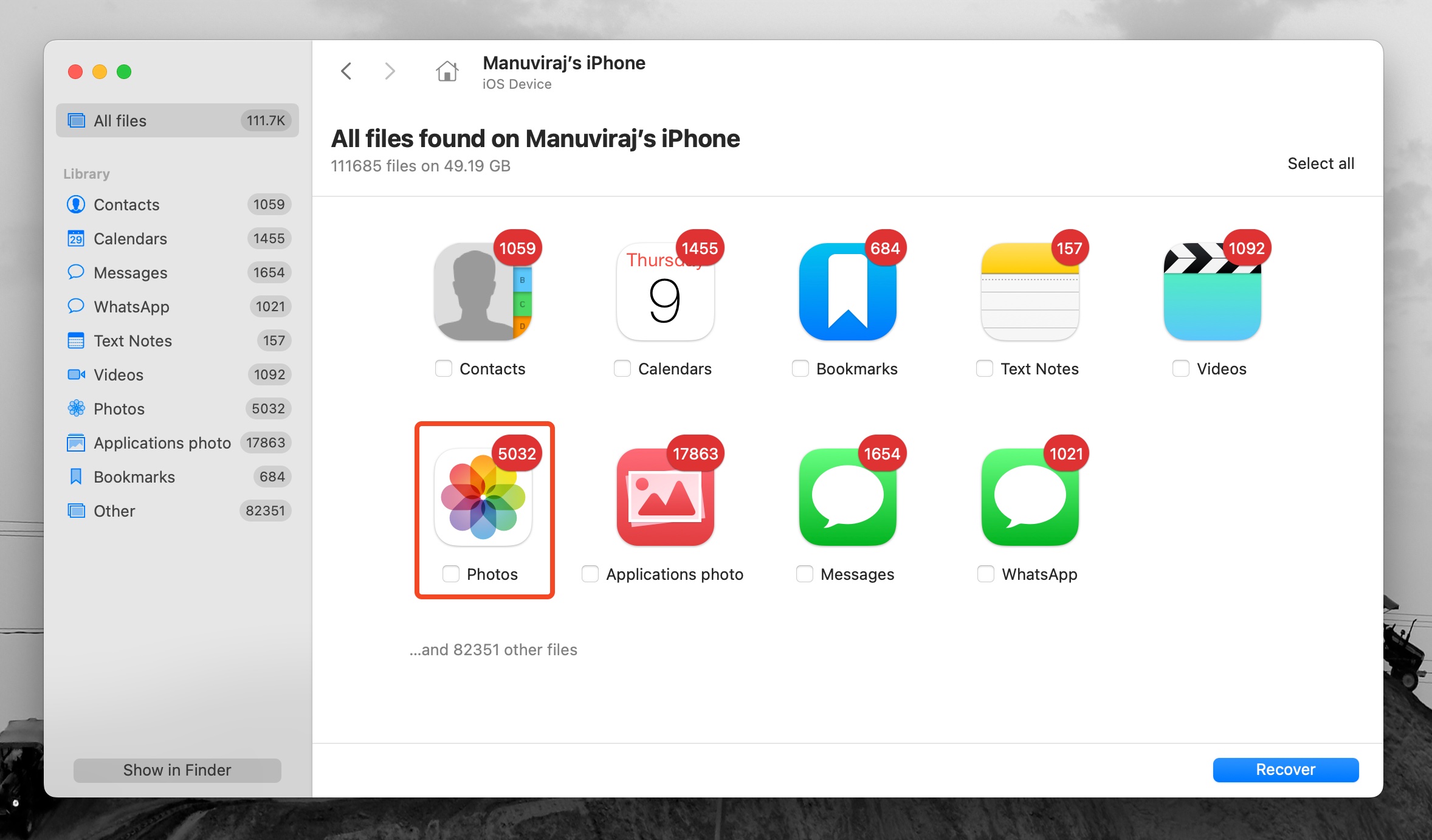 Disk Drill’s iPhone data recovery abilities aren’t limited to just photos. You can also use it to recover deleted messages, documents, videos, notes, etc.